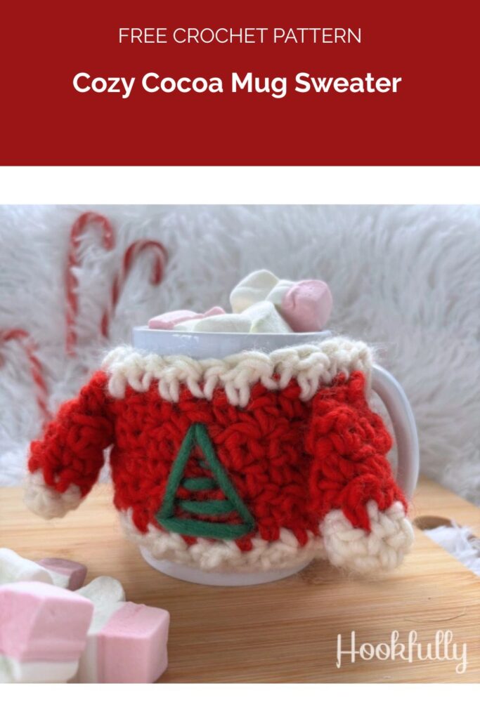 Add a little extra warmth and holiday charm to your favorite drink with the Cozy Cocoa Mug Sweater Crochet Pattern.